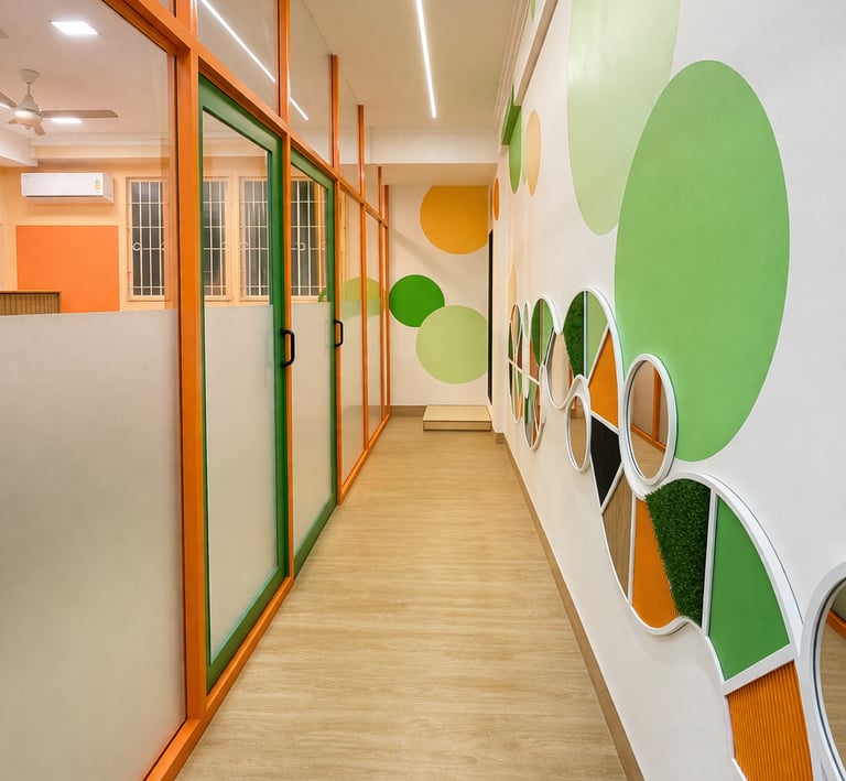 At Bauhauz, we craft playschool interiors that spark curiosity and comfort, blending psychology with clean, modern design.